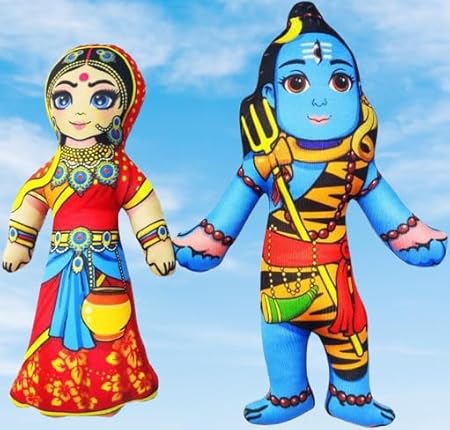 🕉️ Embrace divine love and balance with this beautifully crafted Shiv Ji and Parvati Ji Soft Toy Set by Good Habitss