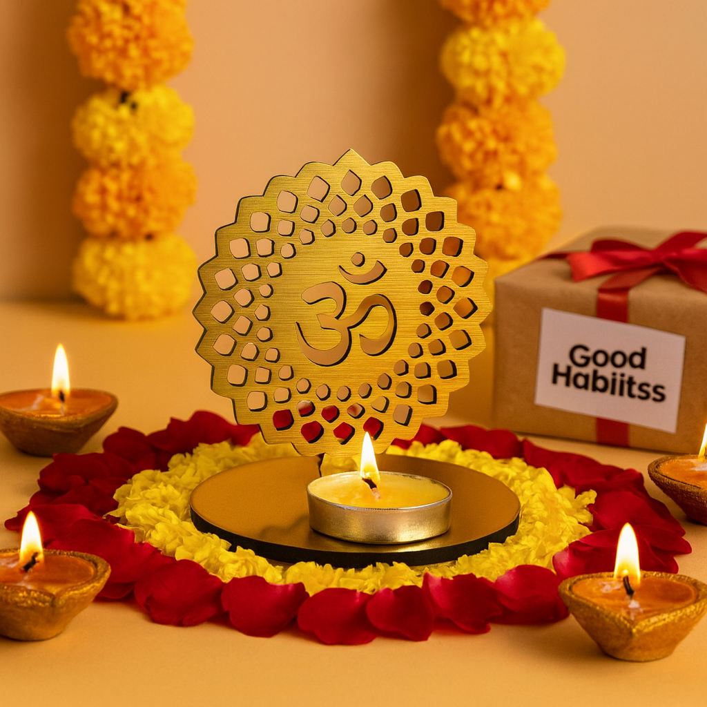 The diya spreads such a peaceful and spiritual vibe. Loved it! (Golden Om Shadow)